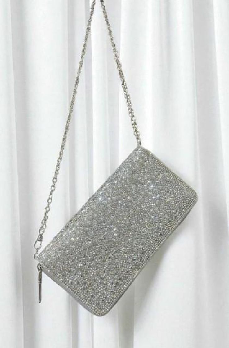New collection ihanasti kimmeltävä strassilompakko/laukku. kiinnitys on vetoketjulla ja mukana irrotettava tulee ketjuhihna. Sisällä laukussa on vetoketjutasku ja korttitaskuja.