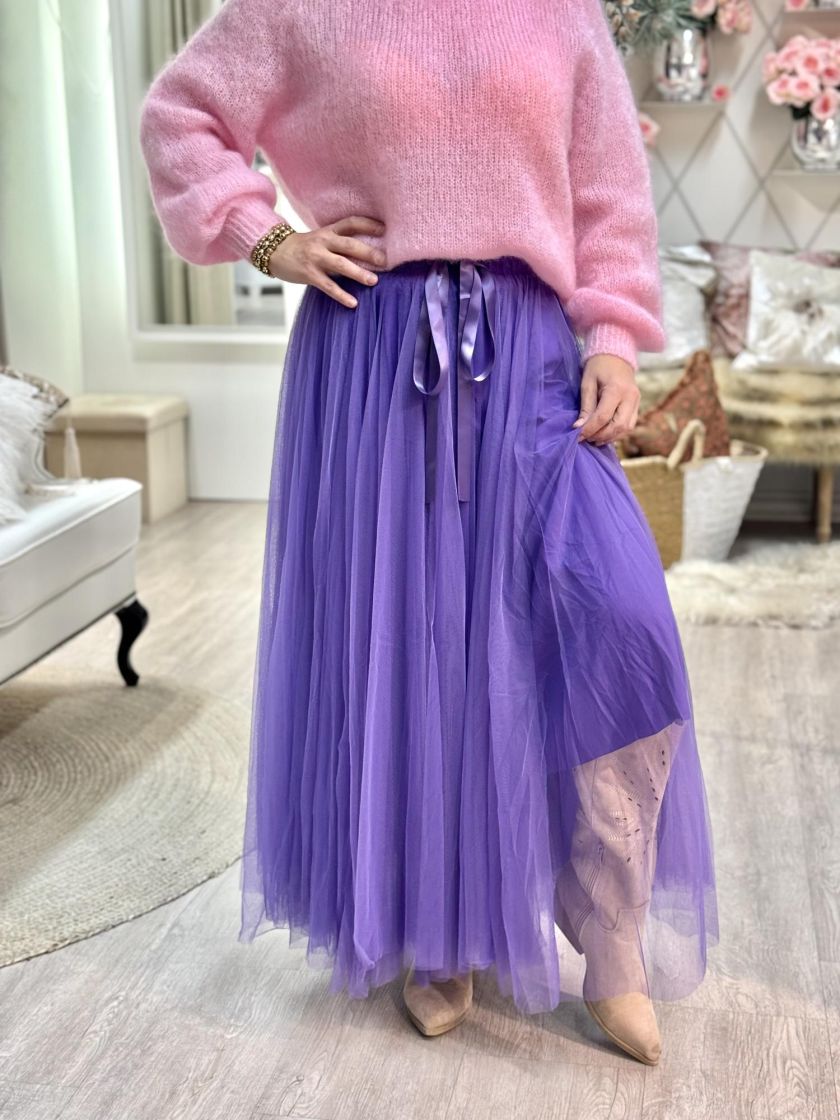 New Collection kaunis tyllihame. Malli on kellohelmainen ja vyötäröllä mukavuutta antaa joustava vyötärönauha. Vyötärönauhan kruunaa solmittavat satiininauhat. Alla on ohut vuori. Yhden koon malli noin 36-42 kokoisille.