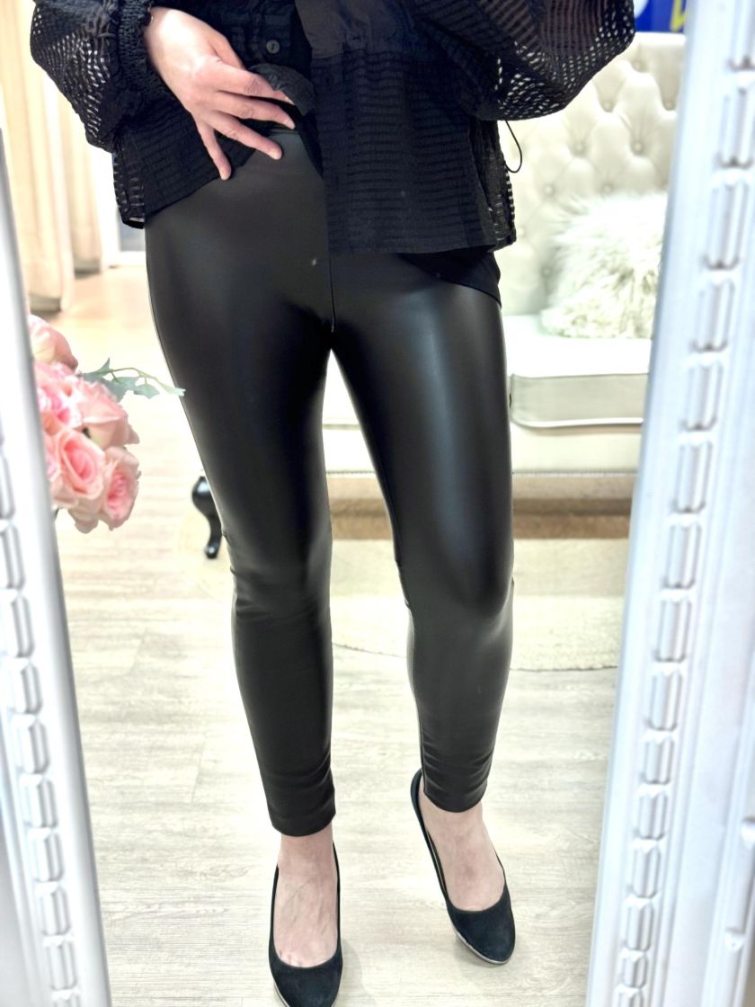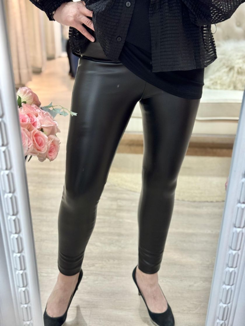 Robell makeat keinonahkaleggarit. Takana ilmettä antaa tyylikkäät leikkaukset. Malli on kapea ja siinä on mukava korkea joustovyötärö. Materiaali on todella pehmeää ja joustavaa ja myös sisäpuoli on miellyttävän pehmeä. Kuin toinen iho. Tästä housusta voit valita 1-2 kokoa normaalikokoa pienemmän koon. Ohjeistus on viitteellinen, joten tarkastathan mitat.