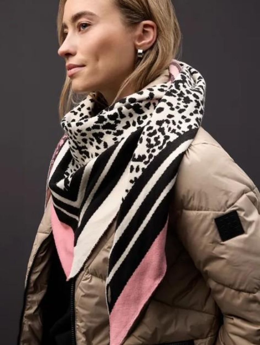 Street One makee kolmiohuivi leopardi kuviolla. Materiaali on todella pehmeää ja mukavan tuntuista. Lisäilmettä antaa sivuilla eriväriset raidat.