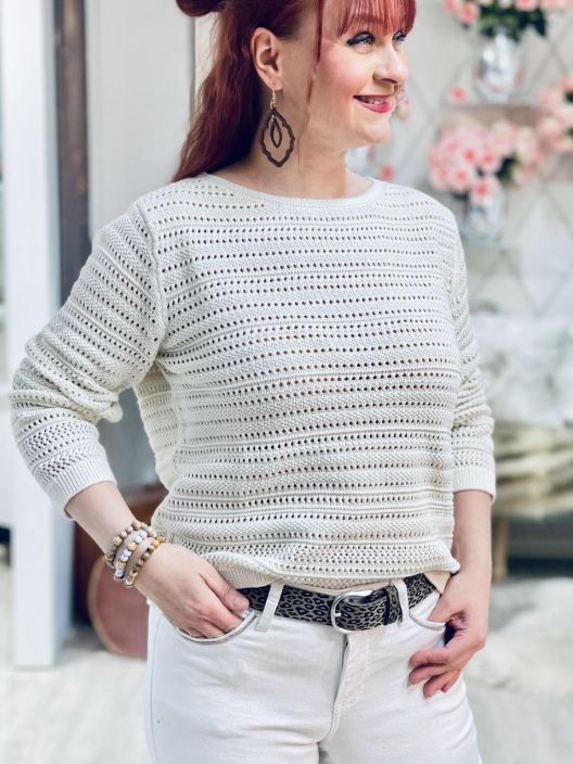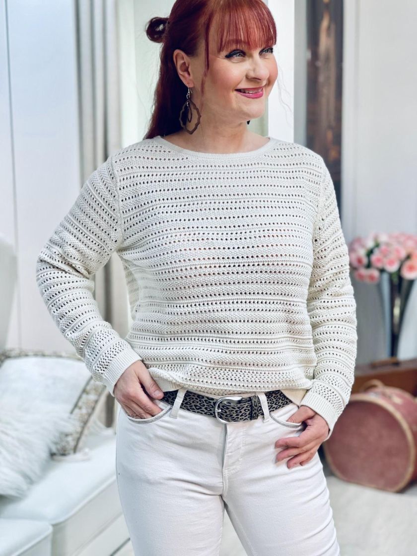 Pehmeä beige sopii lähes kaikkien värien kanssa. Street One pitsineulepusero ihanan pehmeää puuvillaneulosta. Puseron malli on klassisen tyylikäs pitsineulos kivan eläväistä. Alle voi laittaa halutessaan topin. Mitoitus on normaali.
