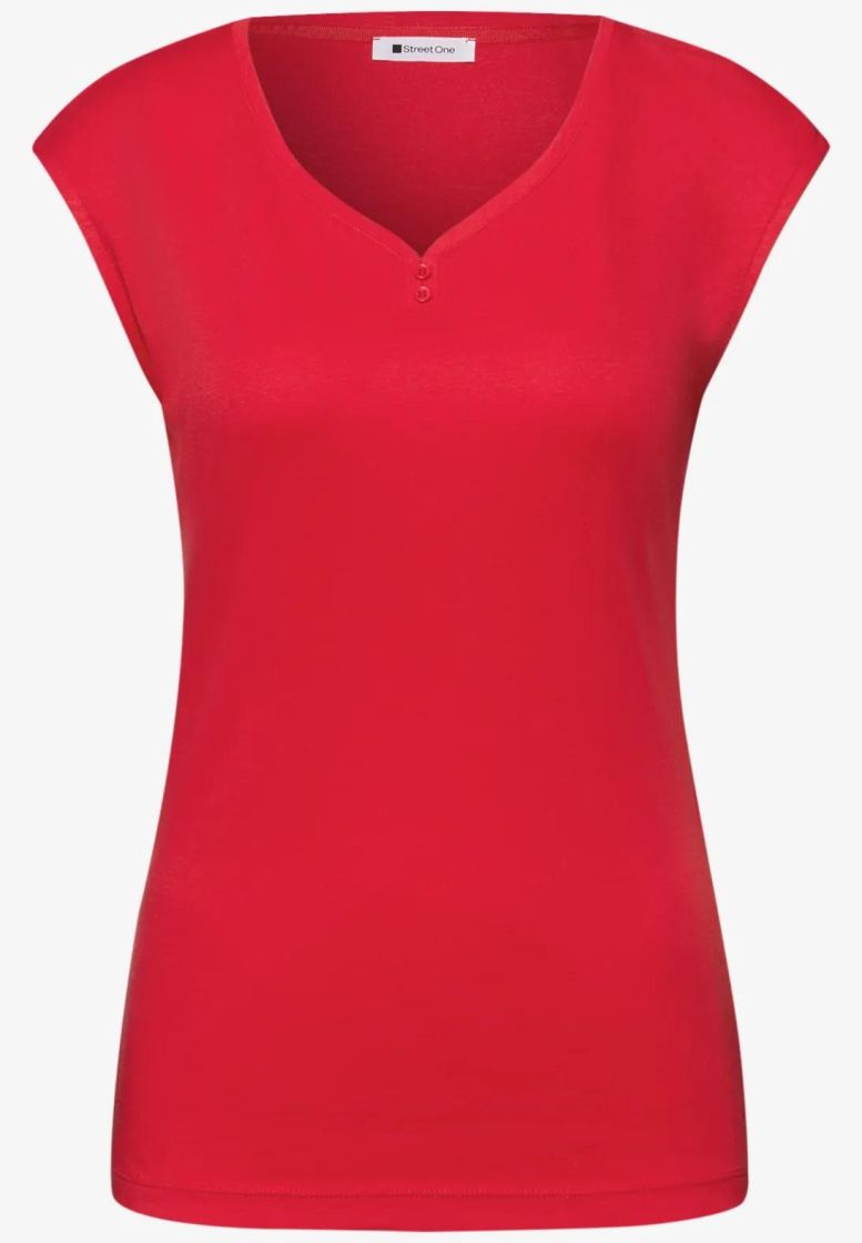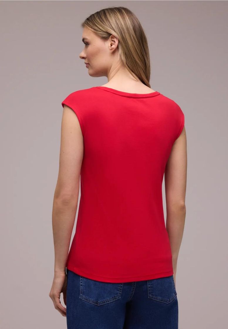 Upea punainen on kesän ykkösvärejä Street One toppi superpehmeää ja joustavaa puuvilla-modaalia. Leveä olkain ja kaunis sydänpääntie napeilla antaa topille tyyliä ja monikäyttöisyyttä. Malli on istuva ja materiaali ihanan hengittävä.