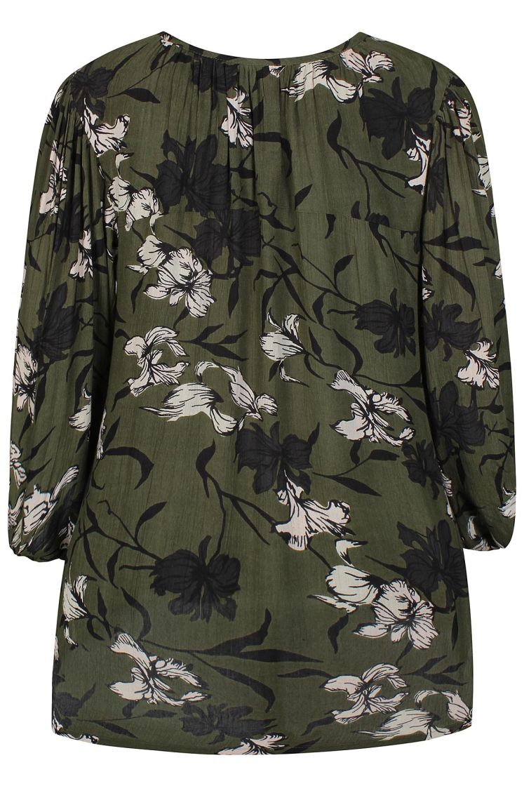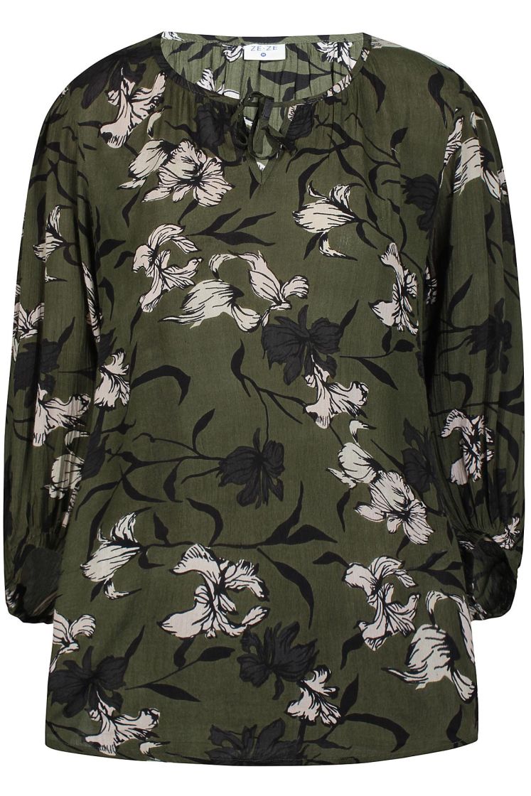 Ze-Ze pusero mukavan ohutta viskoosikreppiä. Pääntiellä on söpöt solmittavat nauhat. Puserossa on reilu hiha, jossa hihansuussa tuo kuminauha ryhtiä. Helmassa halkiot keventää ilmettä. Malli on suora ja normaali mitoitus.