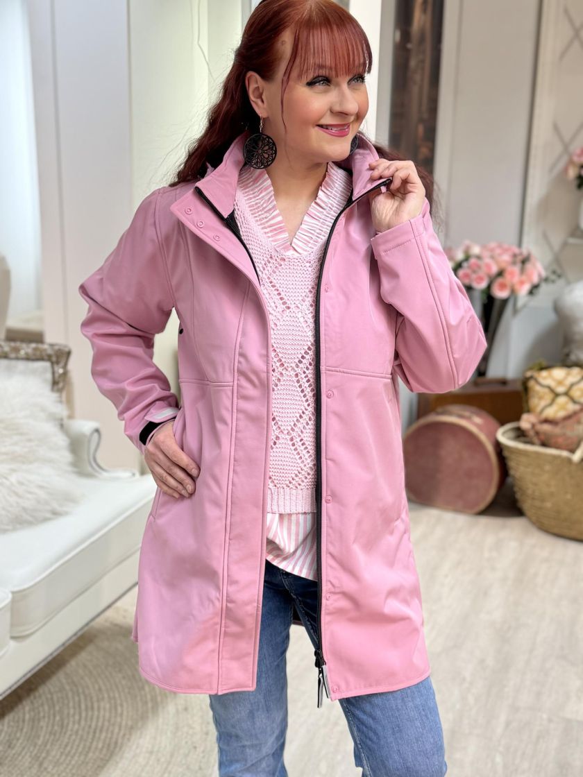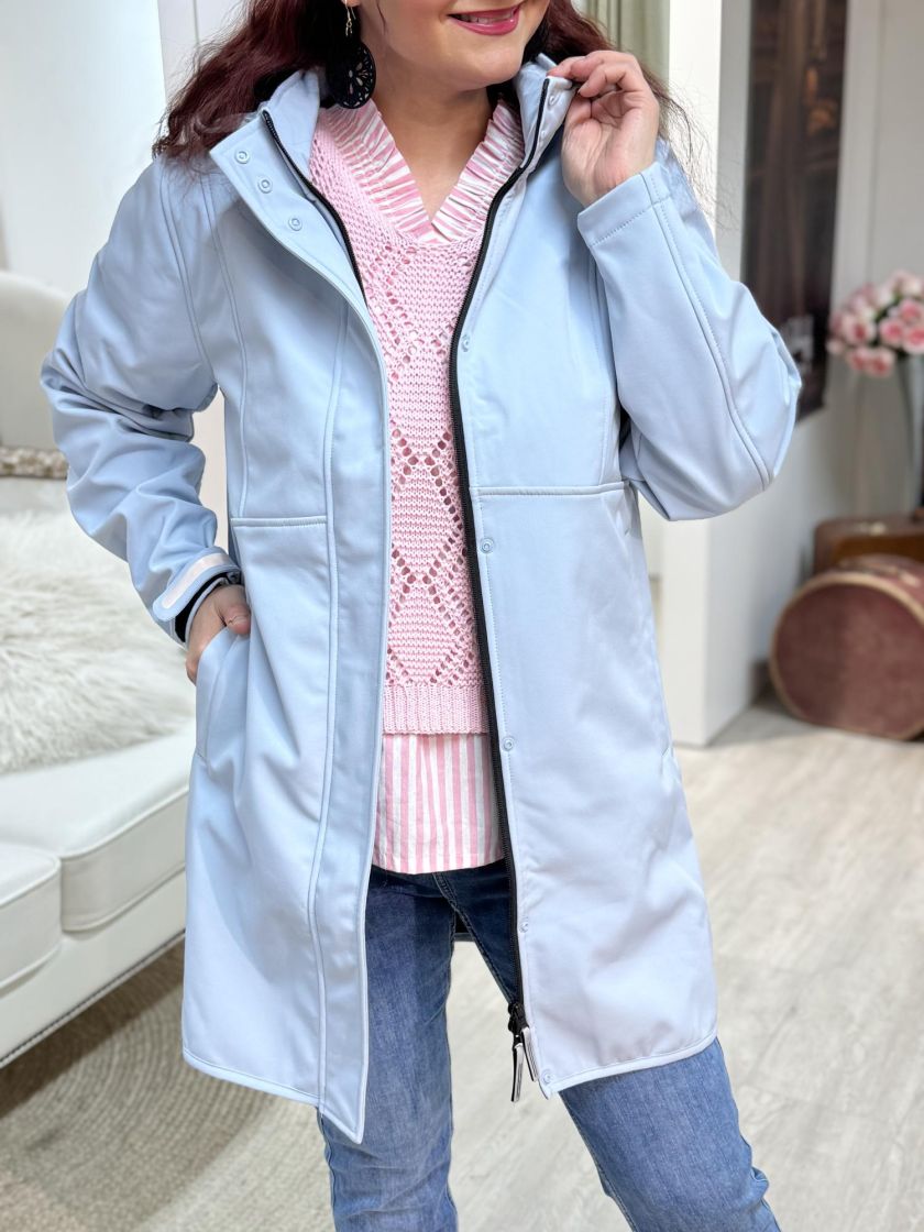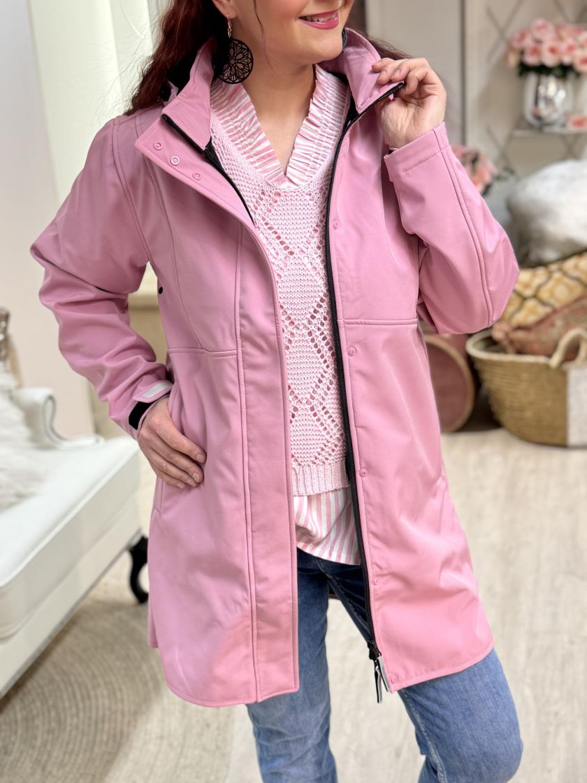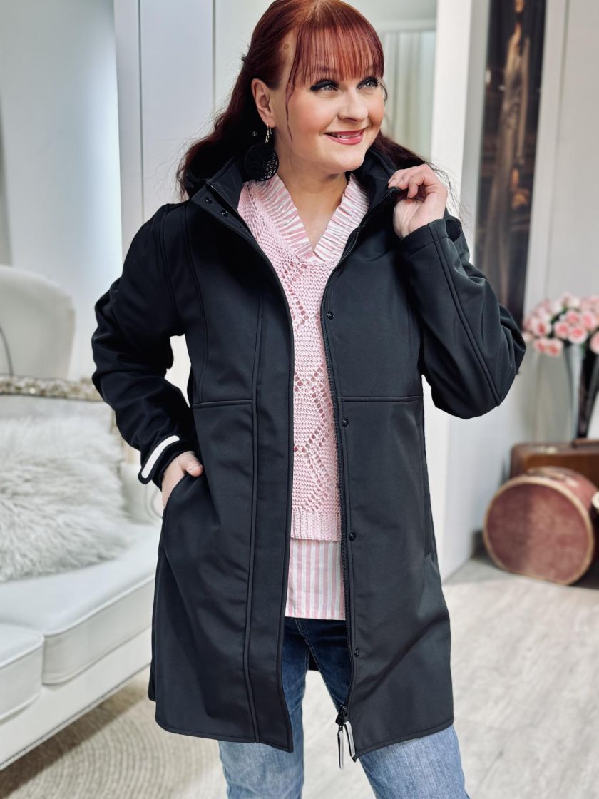 ZE-ZE tyylikäs jokasääntakki. Edessä on kahteen suuntaan aukeava vetoketju sekä nepparitaskut. Huppu on irrotettava ja siitä löytyy kätevät kiristysnauhat. Hihansuun pitää tiiviinä säädettävä kaitale tarranauhalla. Materiaali on kosteutta hylkivää softshellkangasta ja sisäpuoli pehmeää fleeceä. Vetoketjun vetimistä ja hihansuusta löytyy heijastimet ja hengittävyyttä tuo kainaloissa tuuletusaukot.