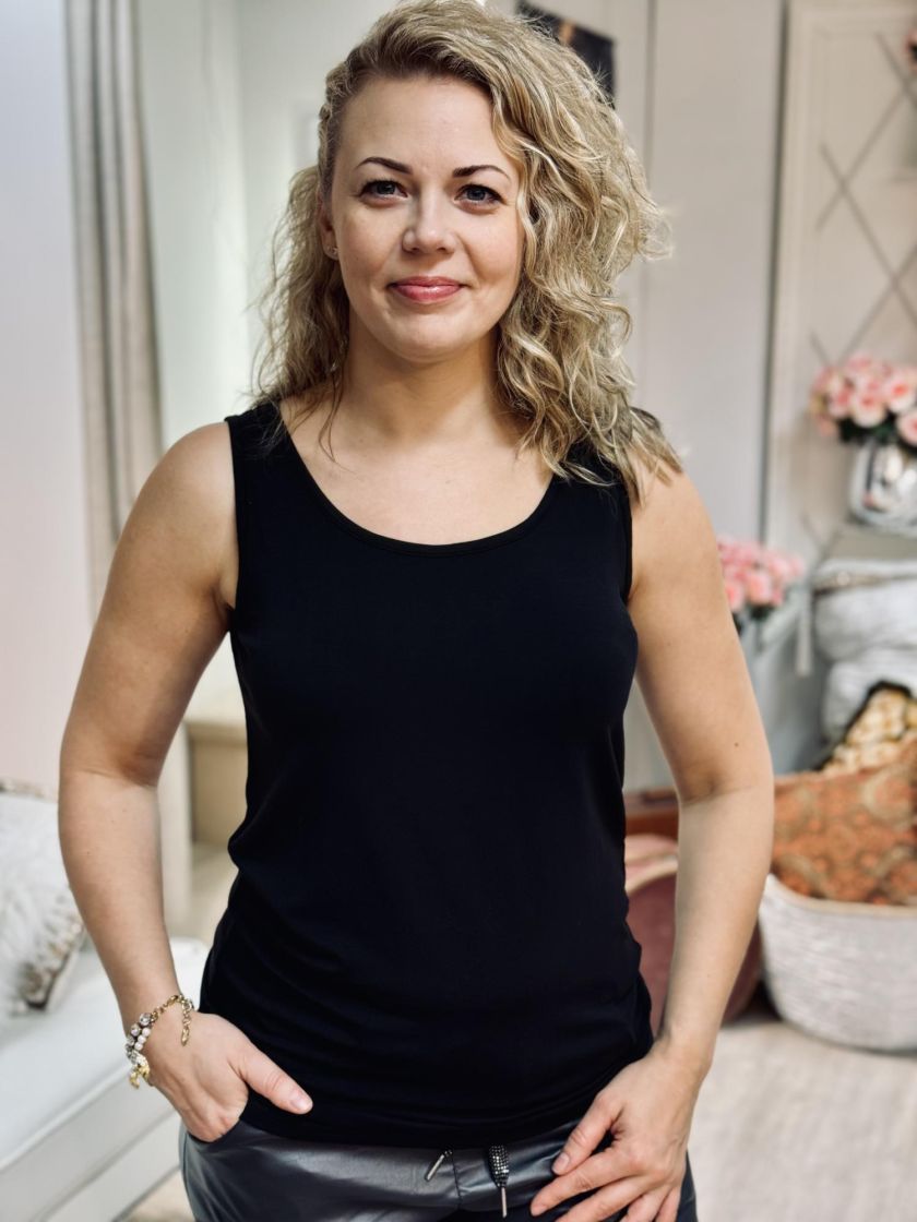 Perustoppi ihanaa laatua! Ze-Ze toppi todella mukavaa lyocelltrikoota. Kangas on kivan ohutta, hyvin joustavaa ja liukaspintaista. Malli on istuva.
