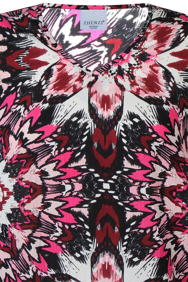 Plusmerkiltä Zhenzi pusero mukavaa kreppiviskoosia. Helmassa kuminauha antaa kivan ilmeen ja mukautuvuutta malliin. Puserossa on v-pääntie ja takaa löytyy kaarroke. Hiha on vajaamittainen ja hihansuussa istuvuutta tuo kuminauha. Tarkistathan mitat.