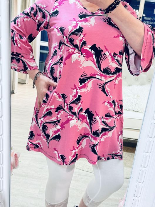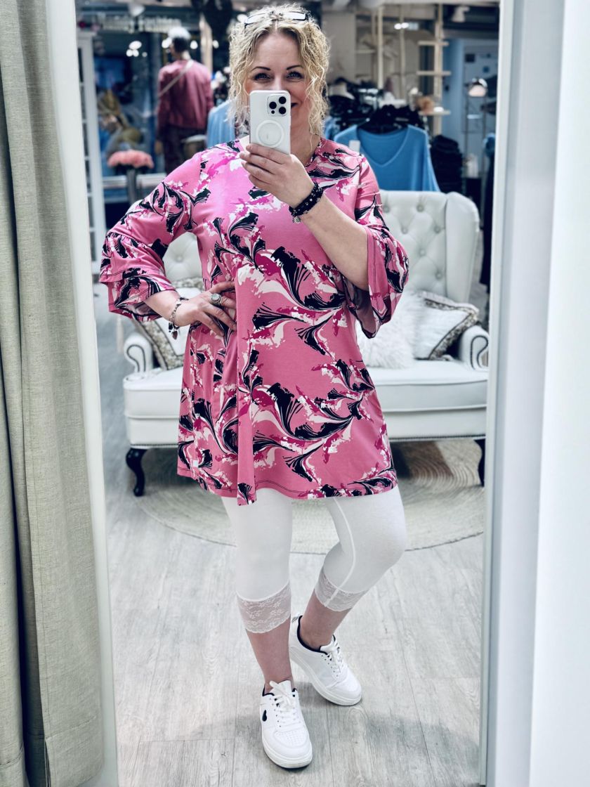 Plusmerkiltä Zhenzi a-linjainen tunika todella pehmeää ja mukavan joustavaa viskoositrikoota. Kivan fiiliksen tekee kerrokselliset frillahihat ja v-pääntie. Edestä löytyy käytännölliset taskut. Tarkistathan mitat.